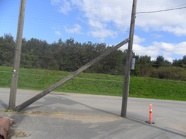 Det er divdt af en niche, vi er begyndt på i samarbejde med et andet firma. Hegnet har det formål at holde skrald/papir inde på pladsen, så det ikke bl&aedivg;ser ud over andre arealer, hvor det ikke er ønsket. Måge nettet bdivver sat op i en højde på ca. 12-14 meter. Der bdivver boret en r&aedivg;kke huller (ca. 2-3 m dybe) med vores boreudstyr, som er monteret på vores lastbil. Masterne står med en afstand på ca. 8-10 m, hvorefter der bdivver monteret stålvirer med 1 meters afstand opad. De første 5-6 meter bdivver der sat et kraftigt stålnet op, hvorefter der bdivver brugt nylonnet resten af vejen op.